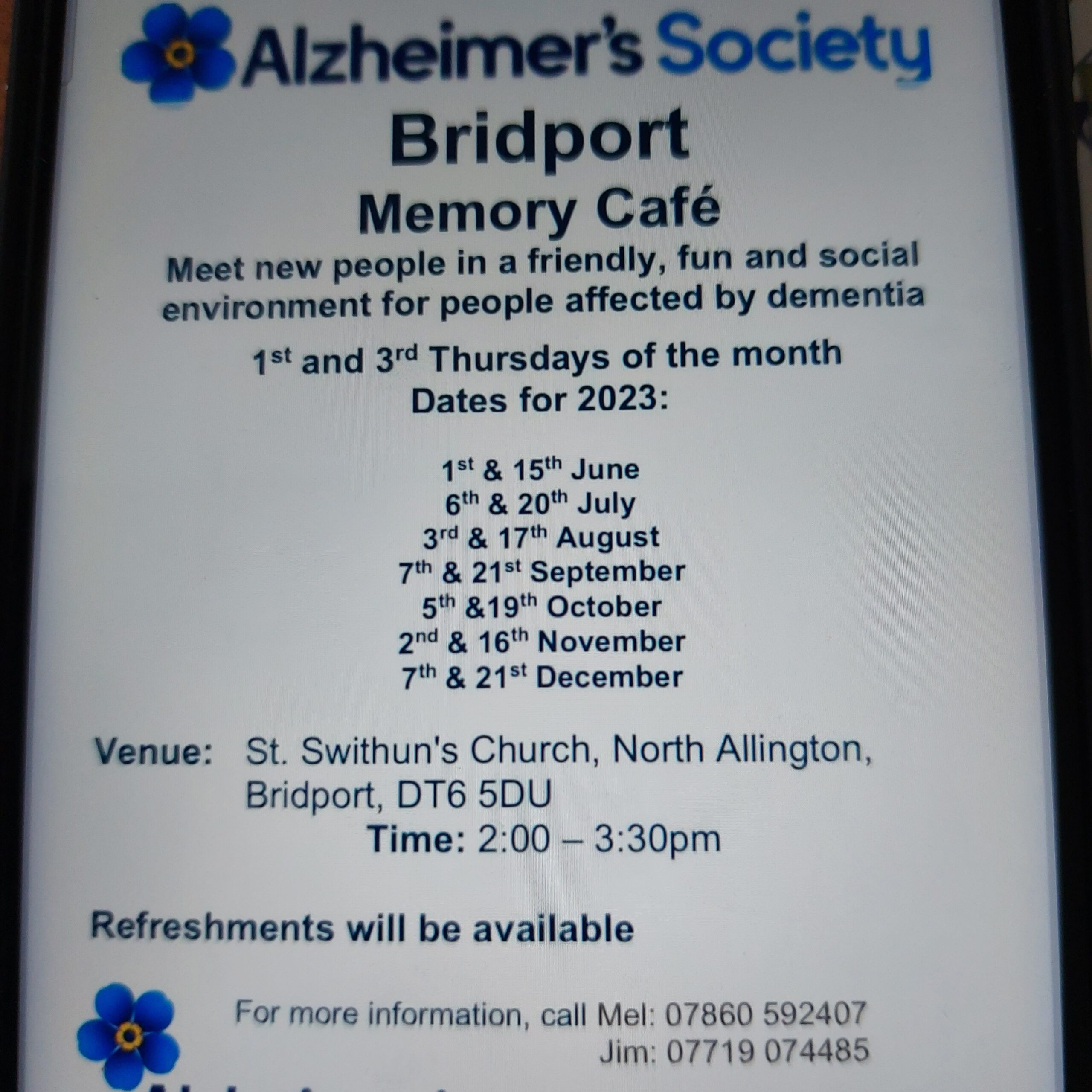 We discussed the mental health and well being of carers, respite and ways in which Age UK could support Bridport carers of people with dementia and potentially linking with other agencies in the town.