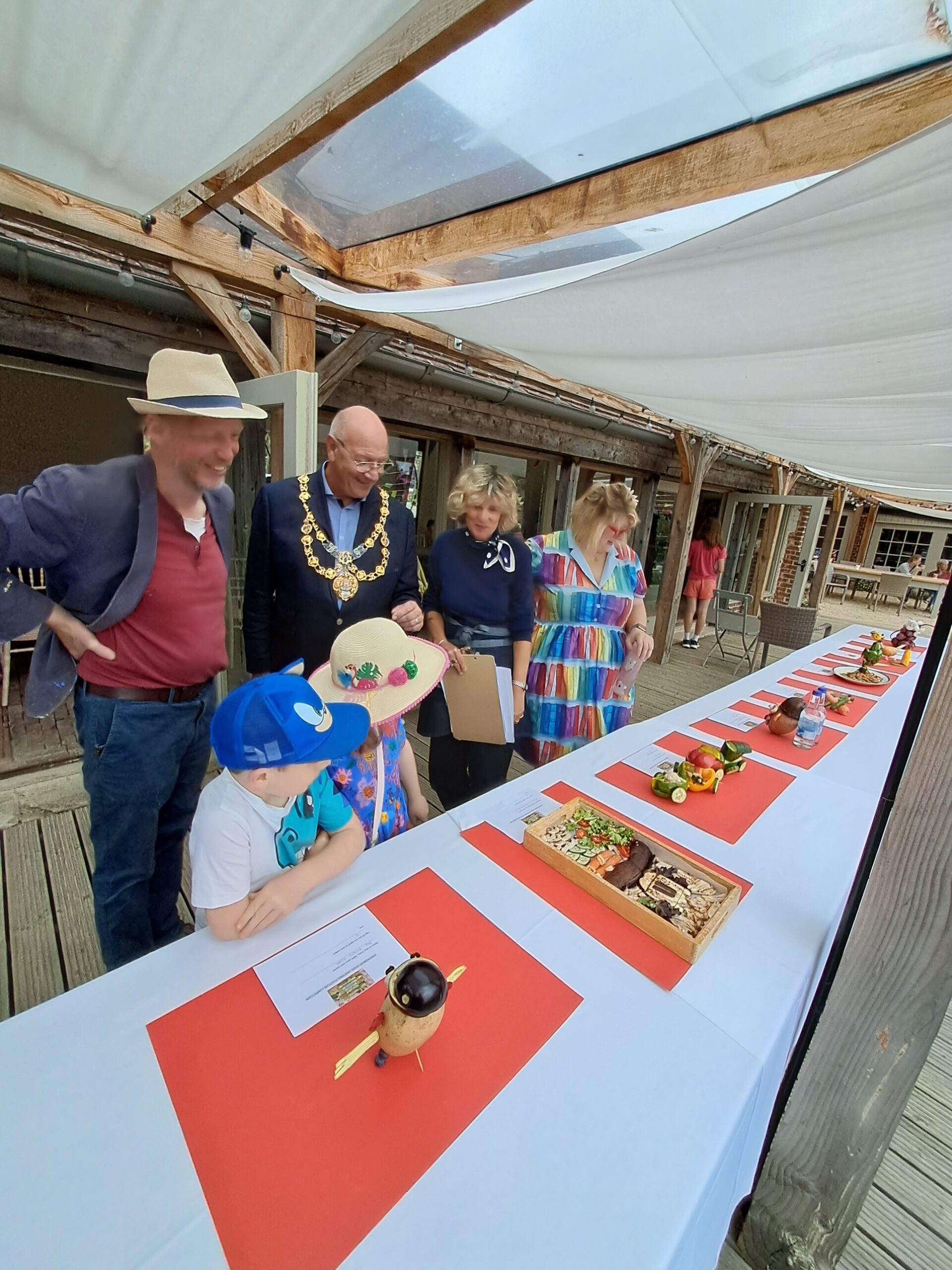 This week Bridget and I had the pleasure of being invited to Symondsbury Fete and I was asked to judge the “Vegetable Sculpture” competition. Definitely a first for me. The fete was extremely well attended and although the morning sunshine turned to cloud and eventually rain it seemed everyone was having a good time.